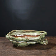 This handmade glazed bonsai pot embraces an abstract, rock-like form that brings a touch of artistry and natural drama to your display. The organic flow of the pot mimics natural landscapes, making it especially suited for accent plants or artistic displays that emphasize nature’s irregular beauty.