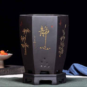 9" (23cm) Tiefer Handgeschnitzter Eleganter Schwarzer Sechseckiger Kaskaden-Bonsai-Topf mit Ständer
