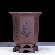 8.4" (21.5cm) Tiefer Eleganter Handgeschnitzter Sechseckiger Kaskaden-Bonsai-Topf mit Ständer