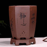 Traditioneller 9" (23cm) tiefer handgeschnitzter sechseckiger Kaskaden-Bonsai-Topf mit Ständer