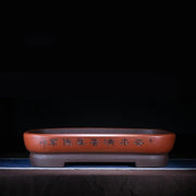 30.3" (77cm) Extra Large Dual-Tone Bonsai Pot with Calligraphy Detailing Forest Pot - Reddish Brown