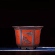 16.9" (43cm) Large 12.2" (31cm) Deep Hexagonal Large Cascade Bonsai Pot - Red