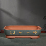 This rectangular bonsai pot embodies tradition in both form and presence. The graceful Chinese calligraphy design gives every piece a story to tell. The deep 3.9" (10cm) body offers stability and space, making it a refined choice for balanced and expressive bonsai compositions.