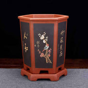 9.1" Deep Unglazed Yixing Clay Hexagonal Cascade Bonsai Pot w Stand