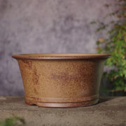 Maceta grande redonda con acabado a fuego de leña semi cascada de 11" (28cm) y 5.3" (13.5cm) de profundidad