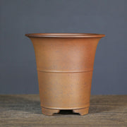 Un magnifique pot à bonsaï non émaillé aux tons chauds de brun, présentant une finition mate lisse et une forme classique évasée. Sa structure robuste et sa hauteur équilibrée le rendent idéal pour les styles de bonsaï en cascade ou semi-cascade tels que genévrier ou pin. La teinte terreuse complète le flux naturel de votre bonsaï tout en mettant magnifiquement en valeur le contraste du tronc.