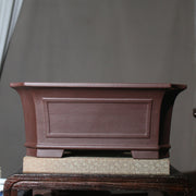Questo Questo vaso rettangolare di alta qualità per bonsai presenta una struttura audace e profonda, pensata per bonsai forti e maturi con radici robuste. Il corpo in argilla viola non smaltata e il design con angoli smussati gli conferiscono una presenza imponente, che si adatta a stili di alberi eretti, inclinati o classici.