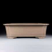 16,7" (42,5cm) Grote Rechthoekige Bonsai Pot met Geschulpte Hoeken in Beige Onglazuurd